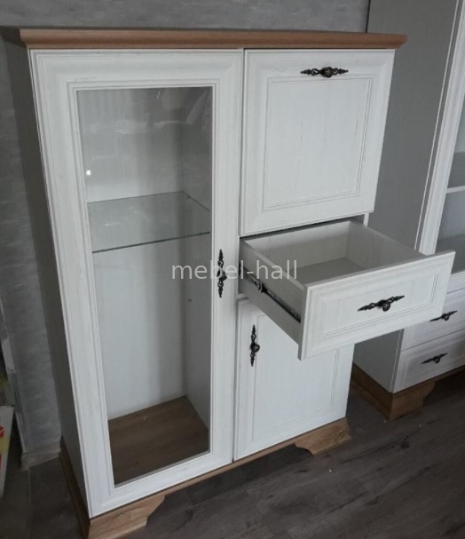 Бар 1В2Д1Ш Ирис - стильный, светлый, современный бар для гостиной украинского производителя Мебель Сервис. Выполнен в стиле кантри, что подчеркивает простоту и лаконичность, в сочетании с утонченностью и изысканностью. Цветовая гамма изделий Ирис представлена древесной тёплой структурой белого оттенка андерсон пайн. Латунные изысканные ручки используются в качестве декора. Все ящики элементов на телескопических направляющих, что гарантирует плавность при выдвижении и надежность. За счет светлых тонов, бар не будет перегружать пространство, а оставит ощущение комфорта и уюта.