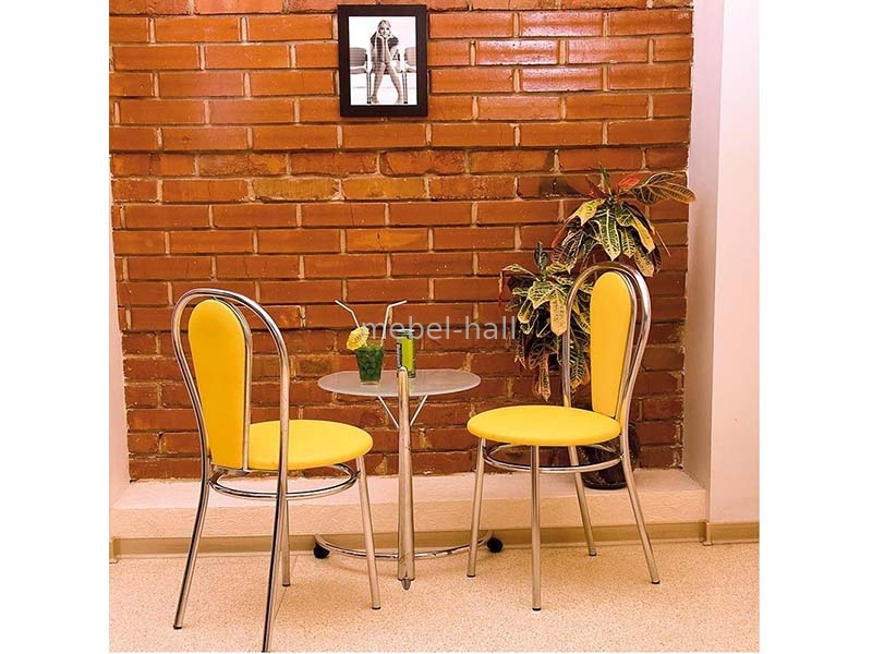 Модель с мягкой спинкой. Мягкое круглое сиденье обеспечивает максимальный комфорт при сидении, может быть обито искусственной кожей или тканью. Долговечность стула определяется прочной конструкцией, которая изготавливается из хромированной стали. Заглушки на ножках предотвращают повреждение пола.
