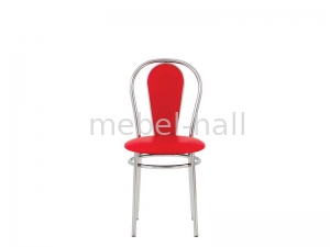 Модель с мягкой спинкой. Мягкое круглое сиденье обеспечивает максимальный комфорт при сидении, может быть обито искусственной кожей или тканью. Долговечность стула определяется прочной конструкцией, которая изготавливается из хромированной стали. Заглушки на ножках предотвращают повреждение пола.
