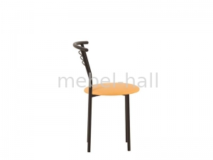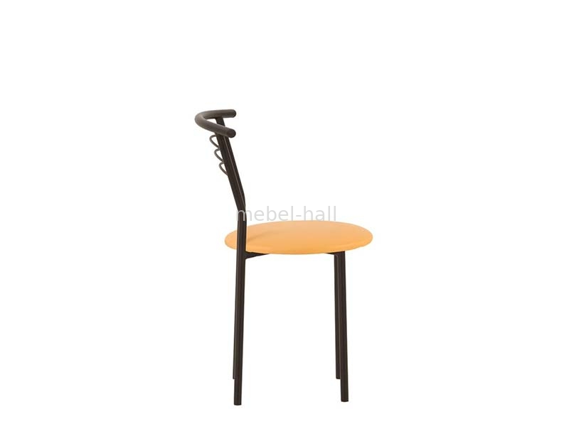 Модель с окончание спинки повторяет изгиб спины, обеспечивая комфортную посадку. Мягкое круглое сиденье обеспечивает максимальный комфорт при сидении, может быть обито искусственной кожей или тканью. Долговечность стула определяется прочной конструкцией, которая изготавливается из cтали, окрашенной в черный цвет. Заглушки на ножках предотвращают повреждение пола.