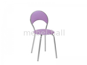 Модель выполнена с мягкой вставкой на спинке, которая обеспечивает комфортную поддержку позвоночника. Компактность модели делает ее отличным выбором для небольшой кухни. Мягкое круглое сиденье обеспечивает максимальный комфорт при сидении, может быть обито искусственной кожей или тканью. Долговечность стула определяется прочной конструкцией, которая изготавливается из хромированной cтали. Заглушки на ножках предотвращают повреждение пола.