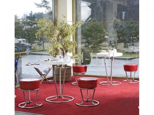 Небольшой стильный стул станет идеальным украшением для небольшого журнального столика в комнате ожидания или в маленьком кафе. Данная модель выделяется мягким сиденьем, с толстым слоем поролона, обитого качественной искусственной кожей. Долговечность стула определяется прочной конструкцией, которая изготавливается из хромированной стали. Заглушки на ножках предотвращают повреждение пола.