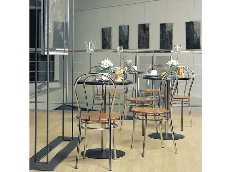 Модель с крепкими металлическими прутьями на спинке, которые создают поддержку для спины, но при этом смотрятся лаконично. Такая модель подойдет как для интерьера кухни, так и кафе. Компактность модели делает ее отличным выбором для небольшой кухни. Мягкое круглое сиденье обеспечивает максимальный комфорт при сидении, может быть обито искусственной кожей или тканью. Долговечность стула определяется прочной конструкцией, которая изготавливается из хромированной cтали. Заглушки на ножках предотвращают повреждение пола.