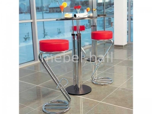 Модель привлекает своим внешним видом. Высокое мягкое сиденье выполнено из цельного блока поролона, сохраняющего форму длительное время. Удобным преимуществом модели является то, что доступ к сиденью осуществляется со всех сторон. Для обивки стула используется искусственная кожа. Стул установлен на крепком металлическом каркасе, изготавливается из хромированной стали. Дополнительное удобство модели предоставляет подставка для ног.