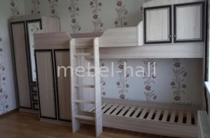 В комплект детской входит кровать горка двухъярусная с размером спальных мест 90 х 200 см и с основанием под матрас ортопедическими ламелями.