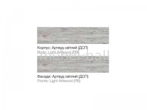 Фасад и корпус выполнен из ламинированного ДСП в цвете Артвуд Светлый.