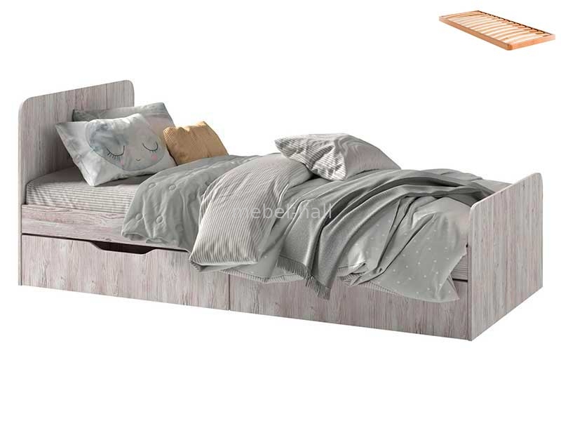 В комплект детской входит односпальная кровать с двумя выдвижными шухлядами со спальным местом 90 х 200 см.