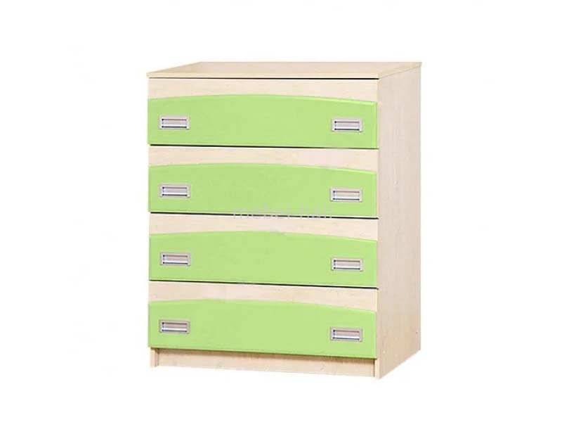 Фасад выполнен из ламинированного ДСП в цвете Клен и МДФ в цвете Фисташка матовая.