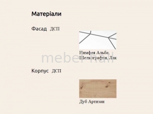 Фасад выполнен из ламинированного ДСП в цвете Нимфея Альба с шелкографией лакированный.