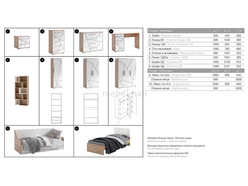 Детская комната Тони Світ Меблів современная, стильная и практичная, воплощающая в себе всю красоту и сдержанность простых линий и форм. Выпускается в натуральной светлой цветовой гамме с глянцевыми фасадами с геометрическим узором. Такое сочетание цветов придают детской комнате атмосферу уюта и комфорта.