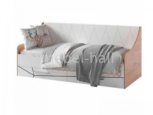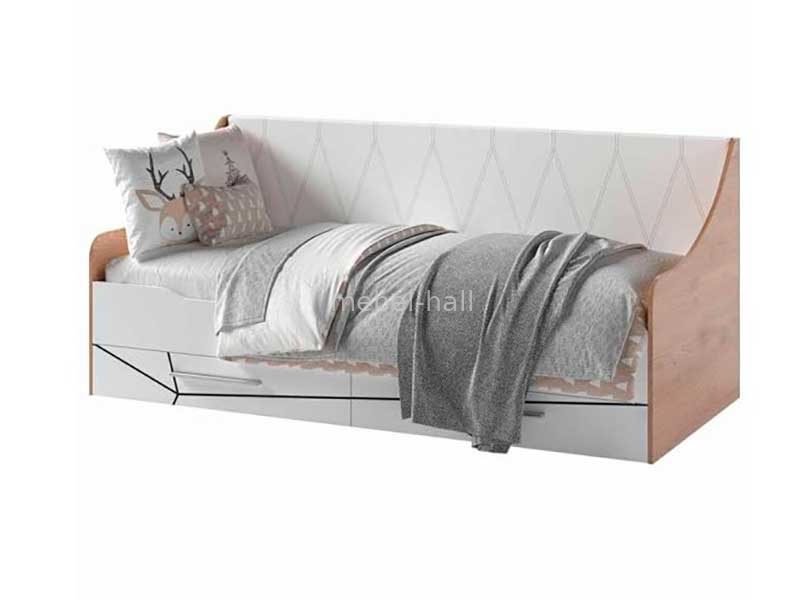 В комплект детской входит односпальная кровать с двумя выдвижными шухлядами 90 х 200 см.