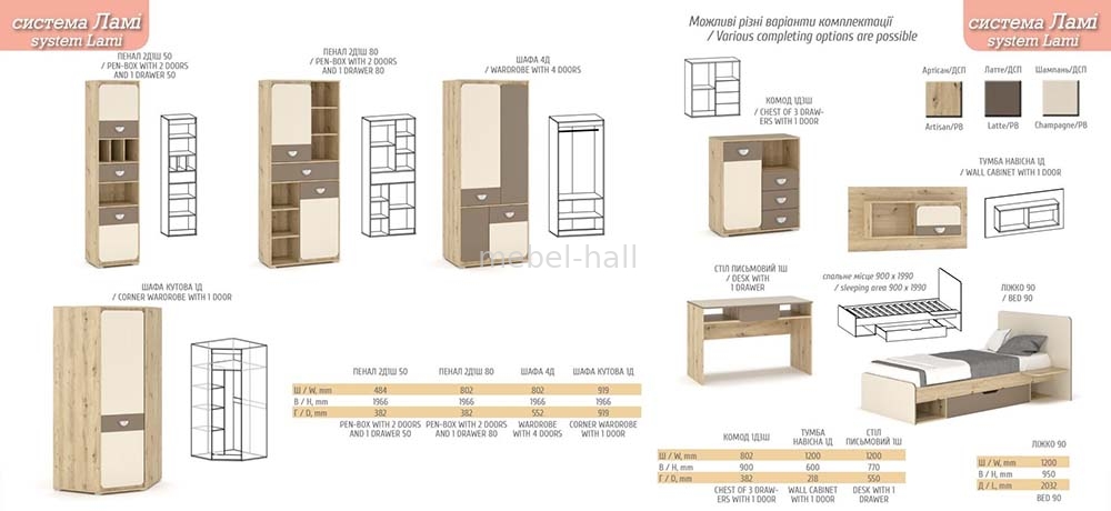 Детская модульная комната с письменным столом Лами Мебель Сервис ДСП Латте Шампань Дуб Артизан