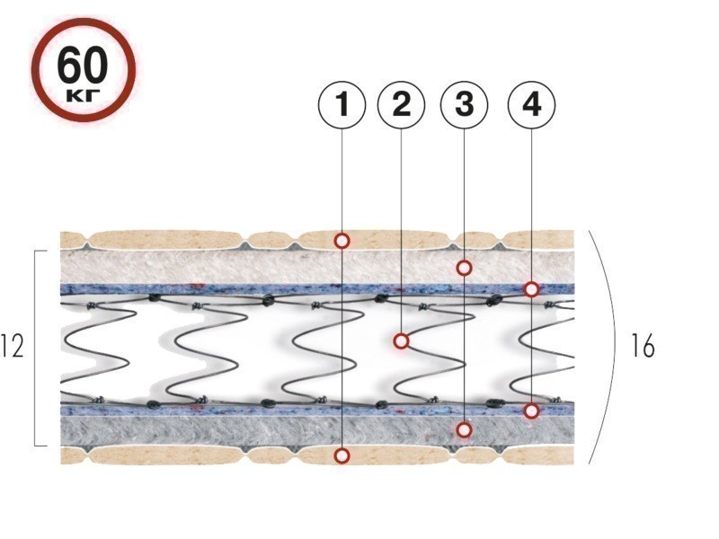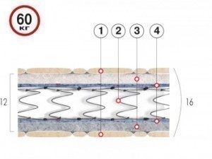 - Зависимый пружинный блок Bonnel (диаметр опорного витка пружины - 75 мм, высота пружины - 80 мм; плотность от 100 шт/м2) (3)