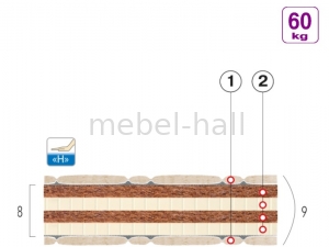 2. Кокосовая койра - плиты из волокон коричневой рубашки кокосового ореха, скрепленных напылением латексных растворов. Основные достоинства экологически чистого природного материала: бактерицидные свойства, не подвержена гниению, не вызывает аллергических реакций. Плотность плит койры - 80-90 кг/м3. Пропитанная латексом структура создает полужесткую, упругую основу - важнейший аспект долговечности матраца.