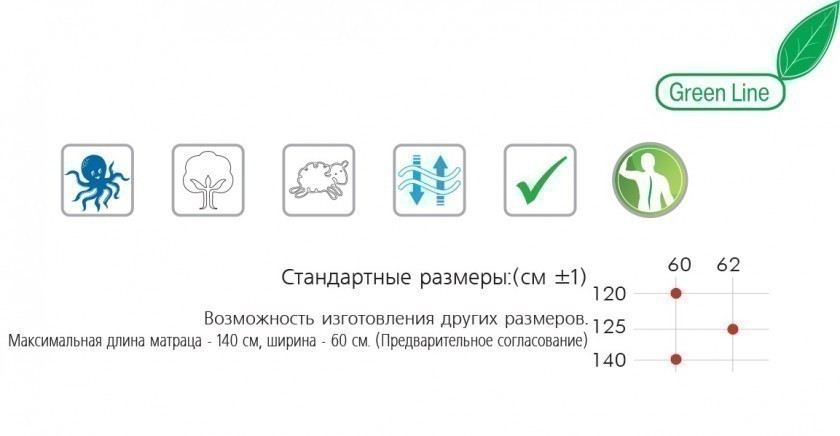 | Размер матраса, см: | 60х140, 63х125, 60х120 |