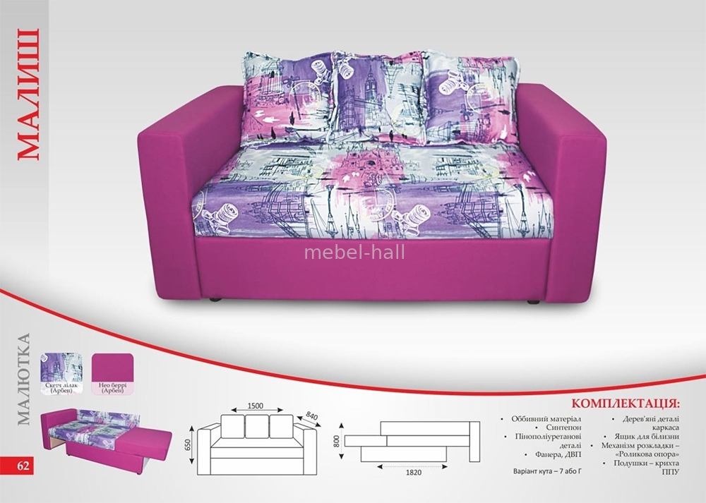 | Тип дивана: | Подростковый, Прямой раскладной |