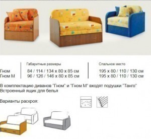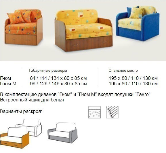 Характеристики прямого дивана Гном 0,8 с деревянными накладками: