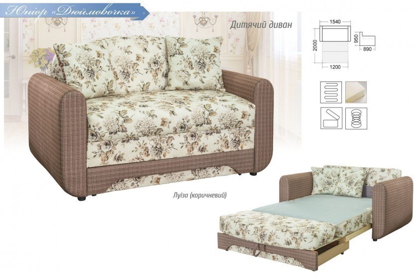 Характеристики прямого дивана Дюймовочка 120*200см: