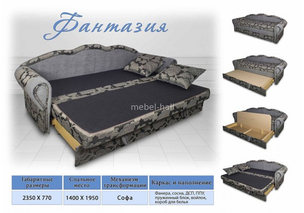 Прямой раскладной диван тахта Фантазия Виркони