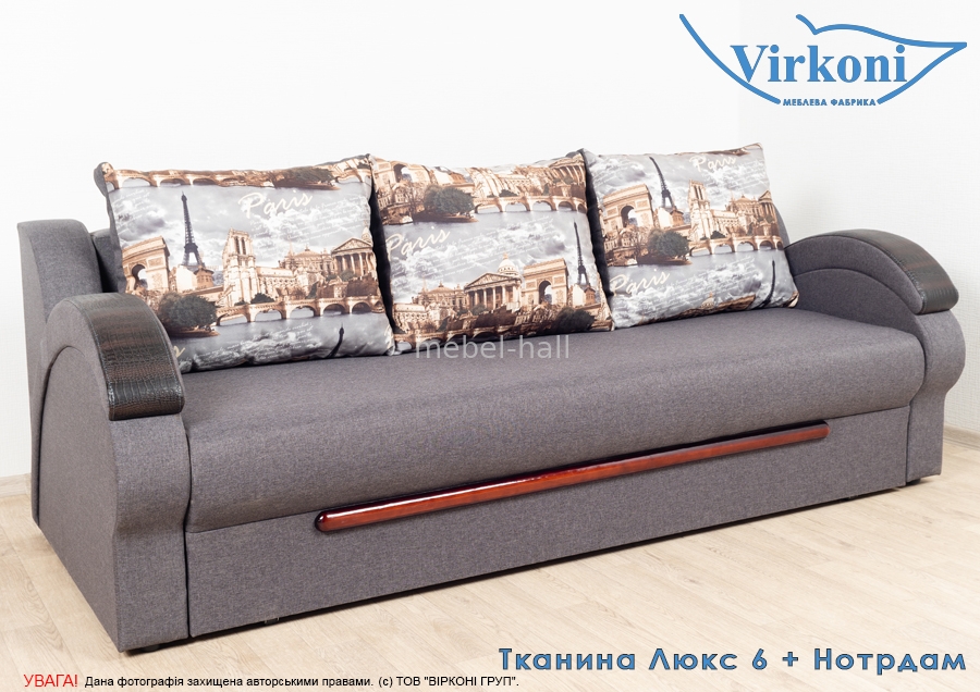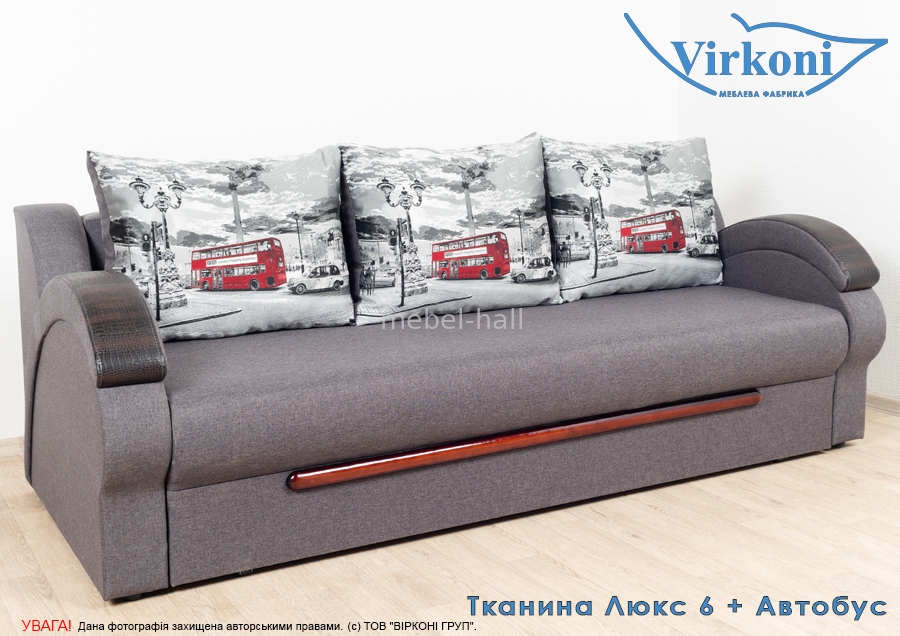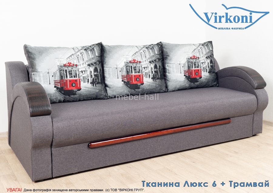 На все диваны с тремя подушками при заказе в тканях: Трамвай, Ипподром, Биг Бен, Бридж, Велосипед, и другие ткани имеющие два рапорта на один погонный метр, удорожание на 200 грн.