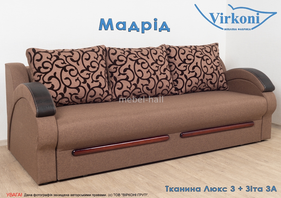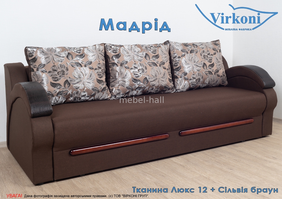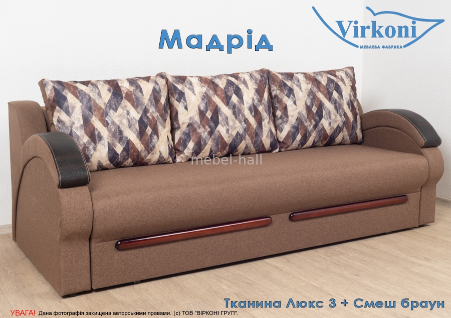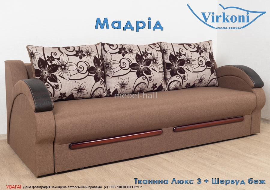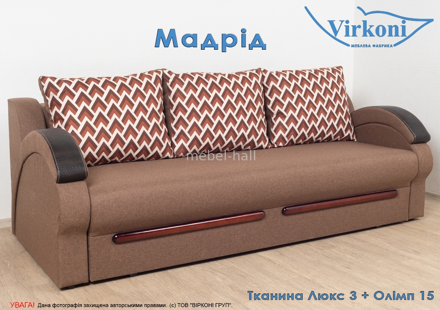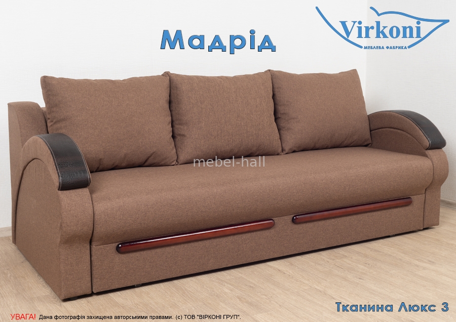 Мягкий диван еврокнижка Мадрид (Виркони) модерновая модель с дизайнерскими подлокотниками из эко кожи. Официальная гарантия производителя 24 месяца.