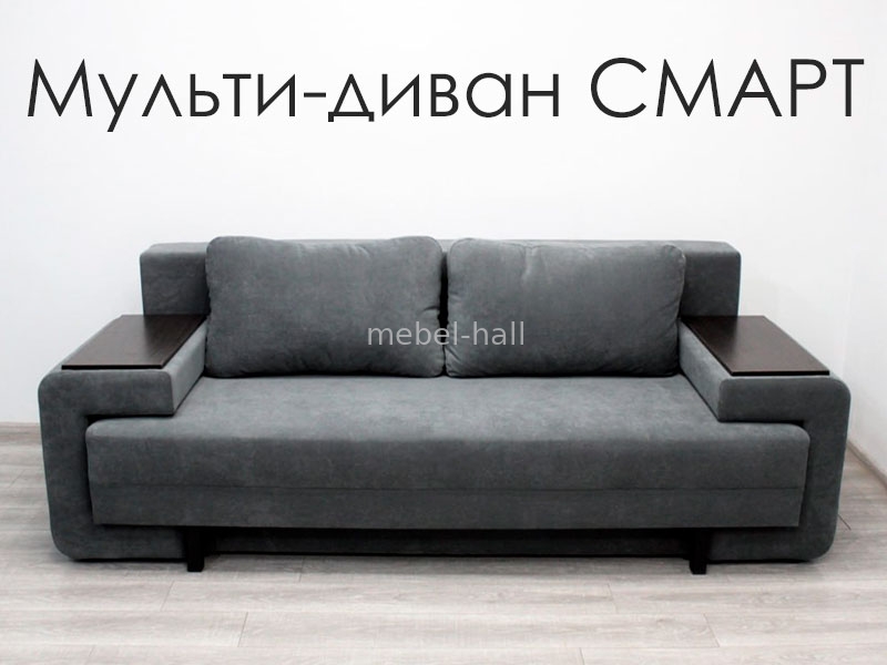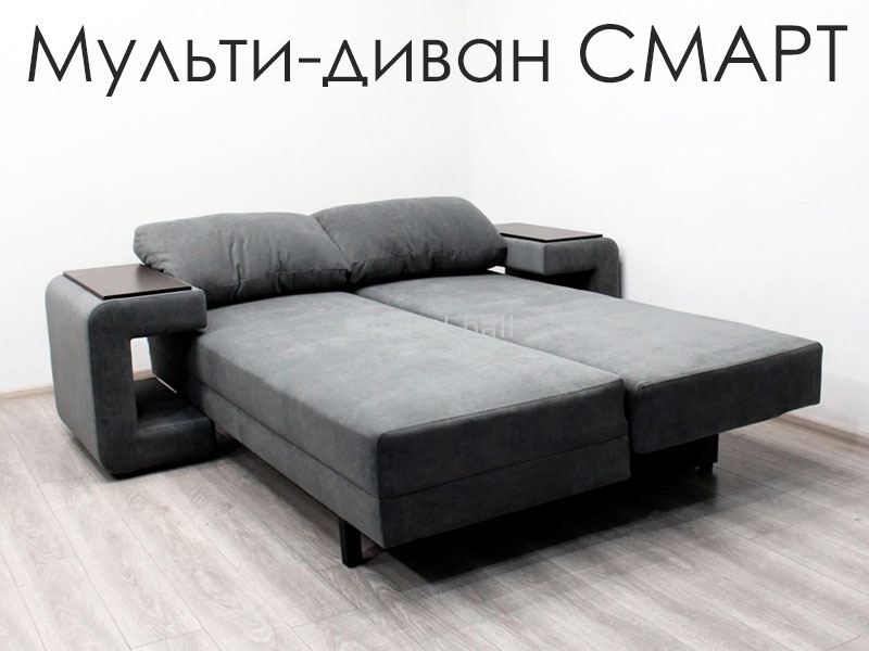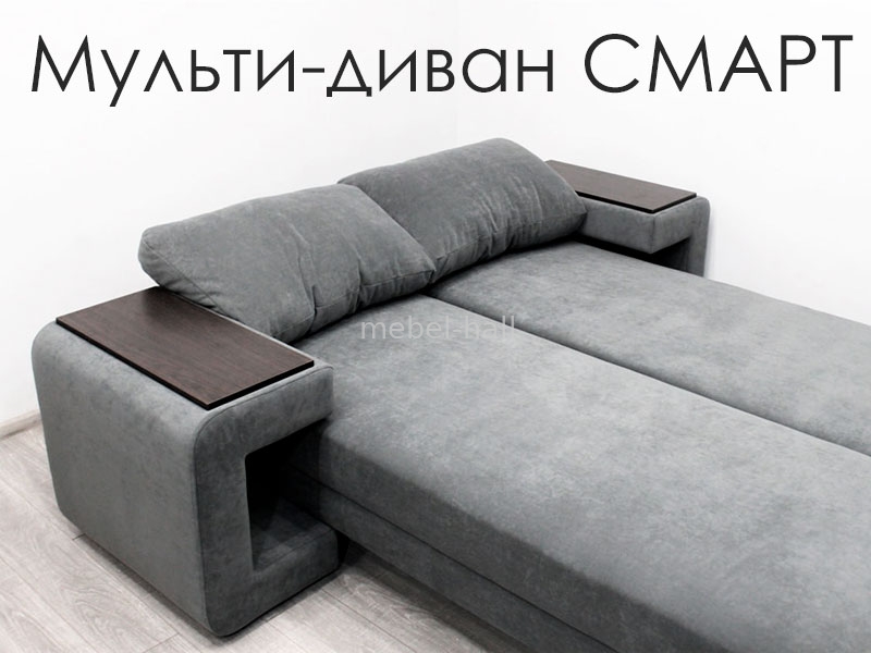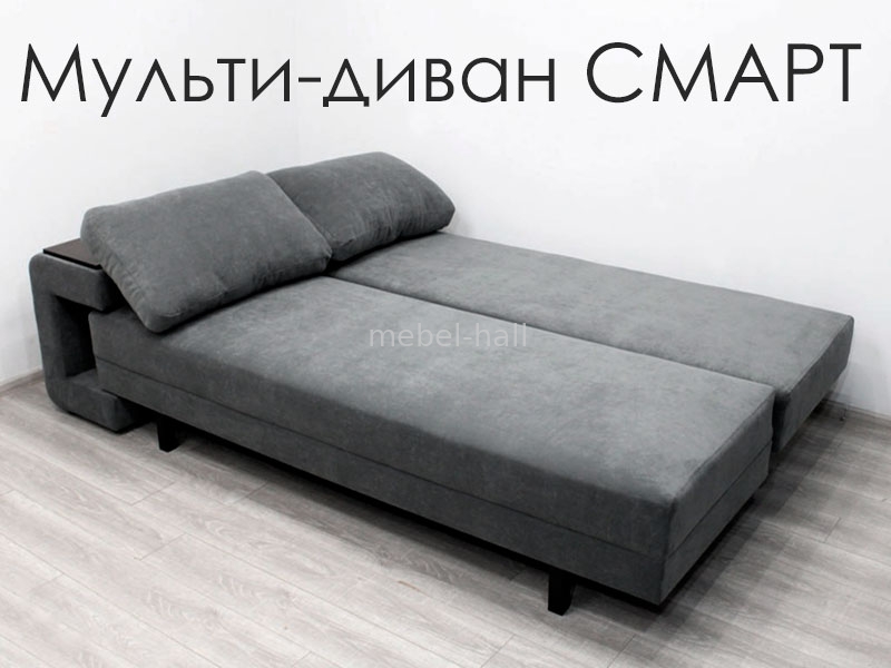 Модный раскладной диван трансформер СМАРТ - это и диван, и стол, и кровать одновременно. Функциональность и ничего лишнего. Идеальное решение для всех, кто привык ценить настоящий комфорт и уют. Широкие подлокотники, мягкие подушки созданы для приятных домашних посиделок. Лаконичные формы позволяют экспериментировать с различными вариантами ткани и цвета. Вы с легкостью превратите диван в просторное спальное место 160*195 см.