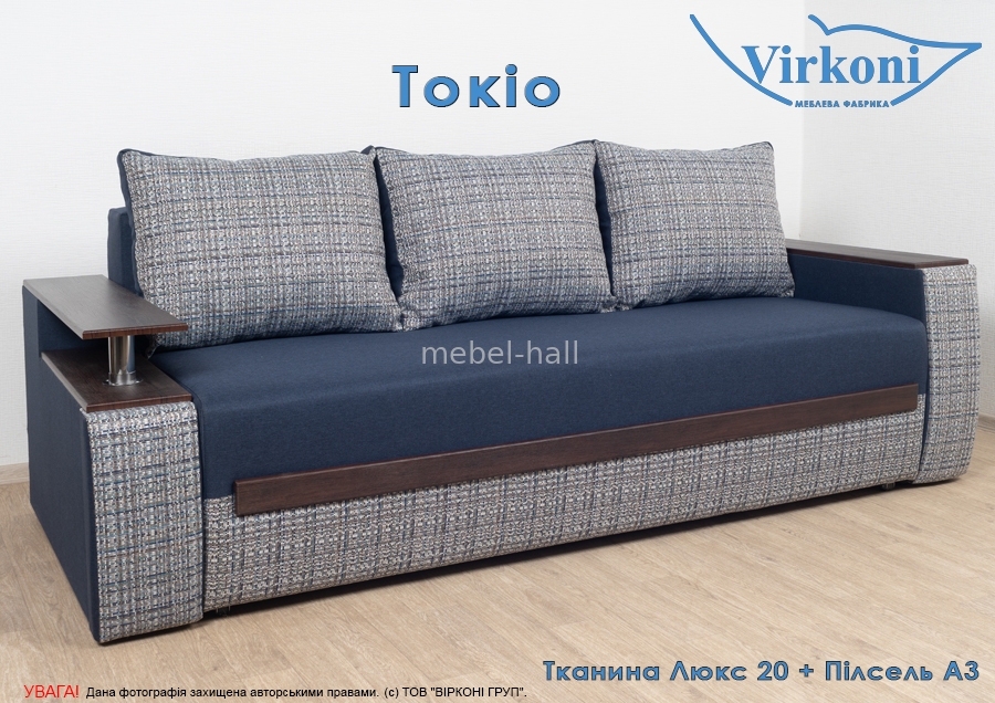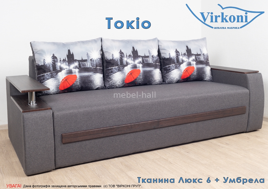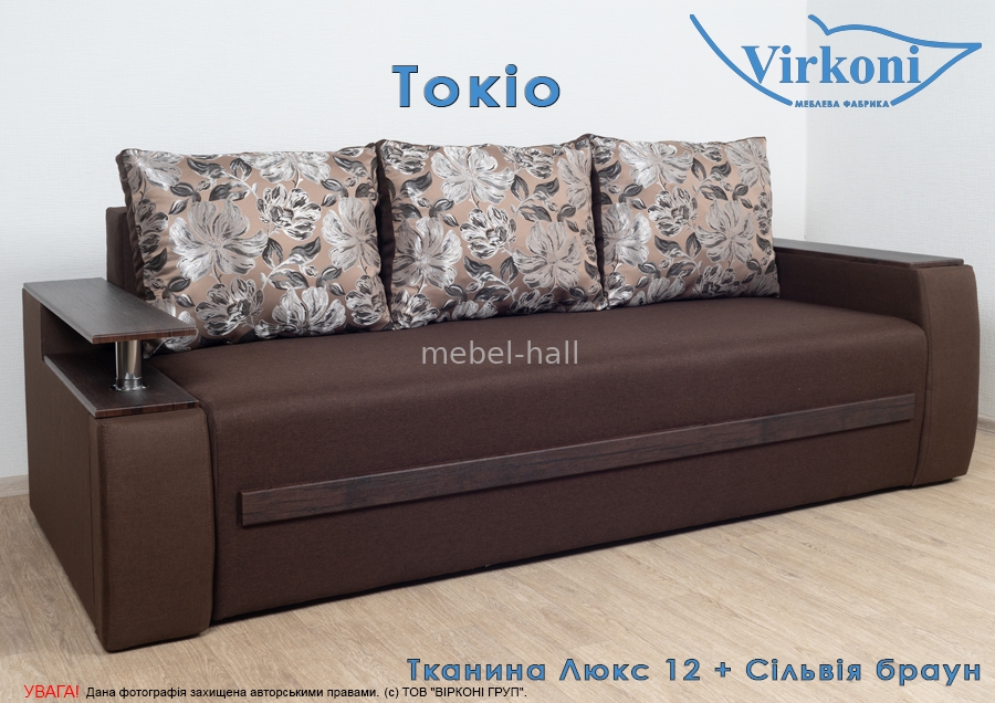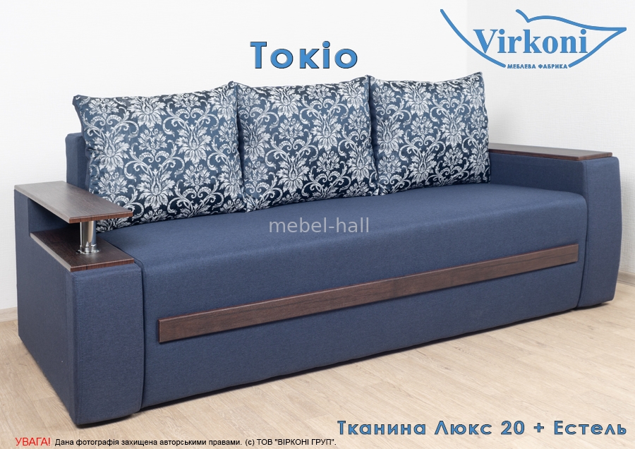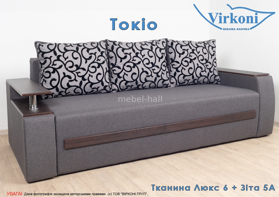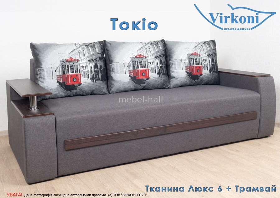 Диван-кровать прямой Токио Виркони с выдвижным баром и нишей в подлокотнике