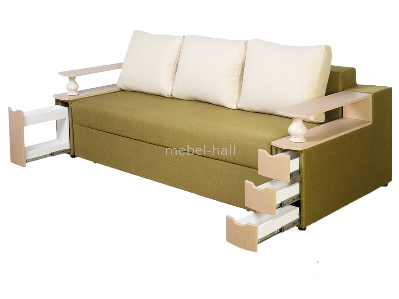 Диван кровать раскладной еврокнижка Эйна Торино с выдвижным баром в подлокотнике и тремя выдвижными ящиками в другом подлокотнике
