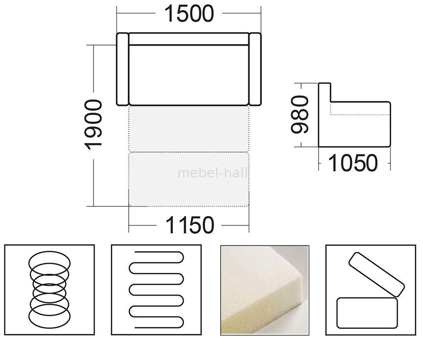 | Наполнение дивана: | Бонель - Змейка - ППУ - Войлок |
