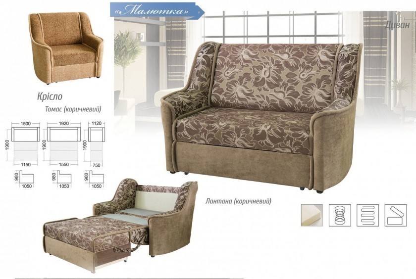 Диван Малютка раскладной 150*105*98 Мебель Сервис