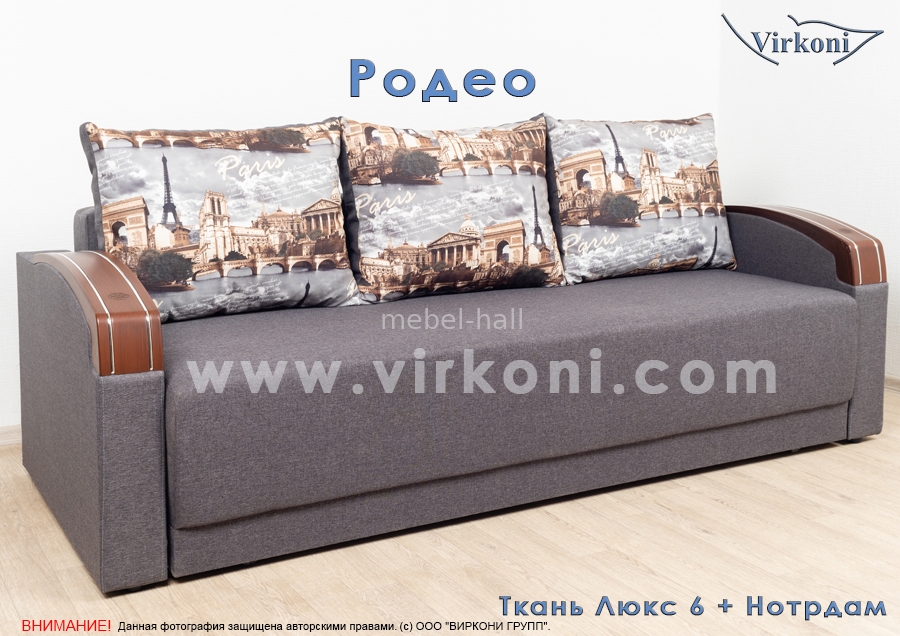 Прямой раздвижной диван РОДЕО Виркони - модель современная, стильная, надежная и практичная. Хорошо подойдет к любому Вашему интерьеру, как квартиру, так и офис. Есть большая ламинированная бельевая ниша. Цена указана за диван в обивки из ткани,как на фото. Стоимость дивана в других категориях ткани просчитывается менеджером интернет-магазина Мебель Холл Николаев индивидуально.
