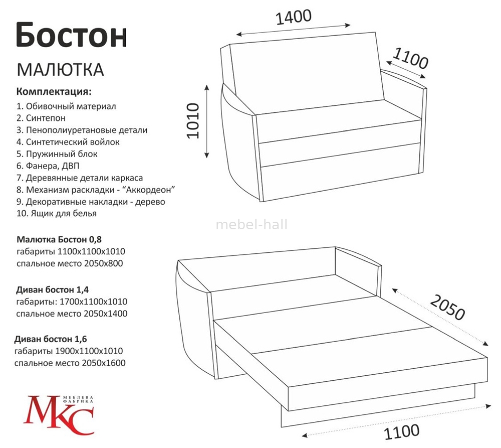 Благодаря проверенному и надежному механизму раскладки дивана-кровати "аккордеон", он может раскладываться в полноценное спальное место, размером 80*190см.
