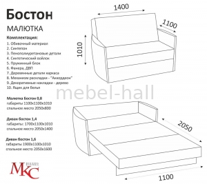 Диван раскладной малютка 0,8 Бостон аккордеон МКС