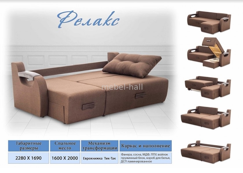 Угловая евро книжка Релакс-2 хорошо впишется в залу или спальню, благодаря своим компактным размерам.