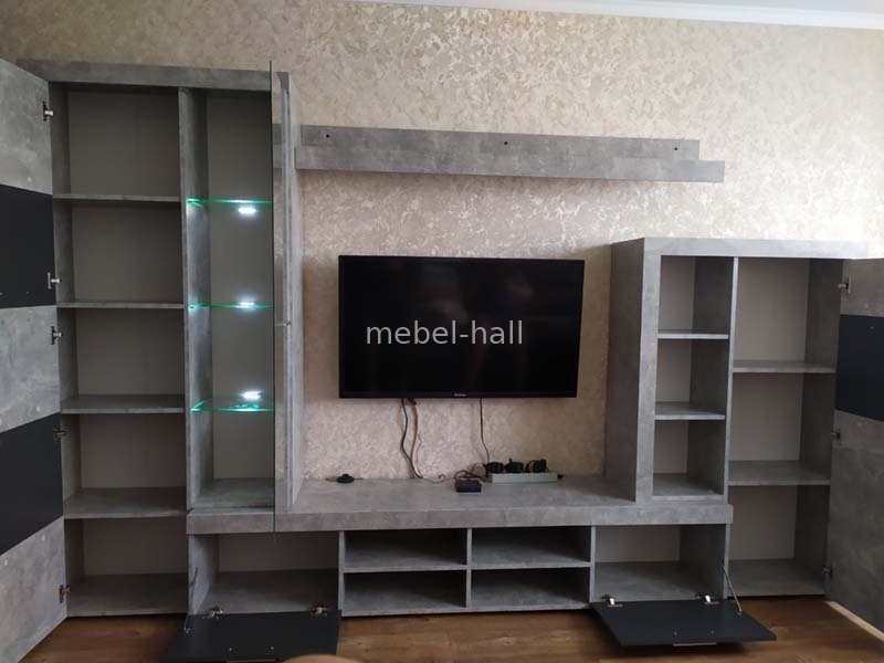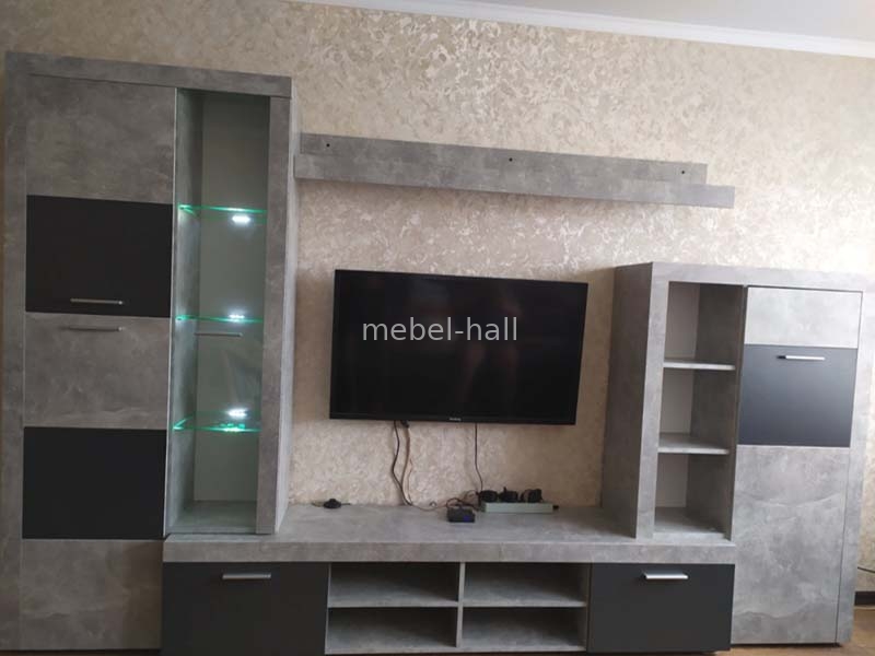 Стенка в гостиную Альпин Гербор бетон ательер / антрацит.
