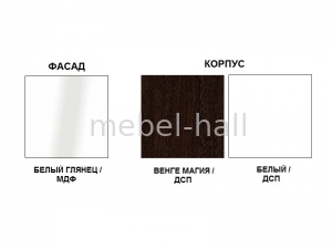 Корпус изготовлен из ламинированного ДСП Венге Магия и Белый.