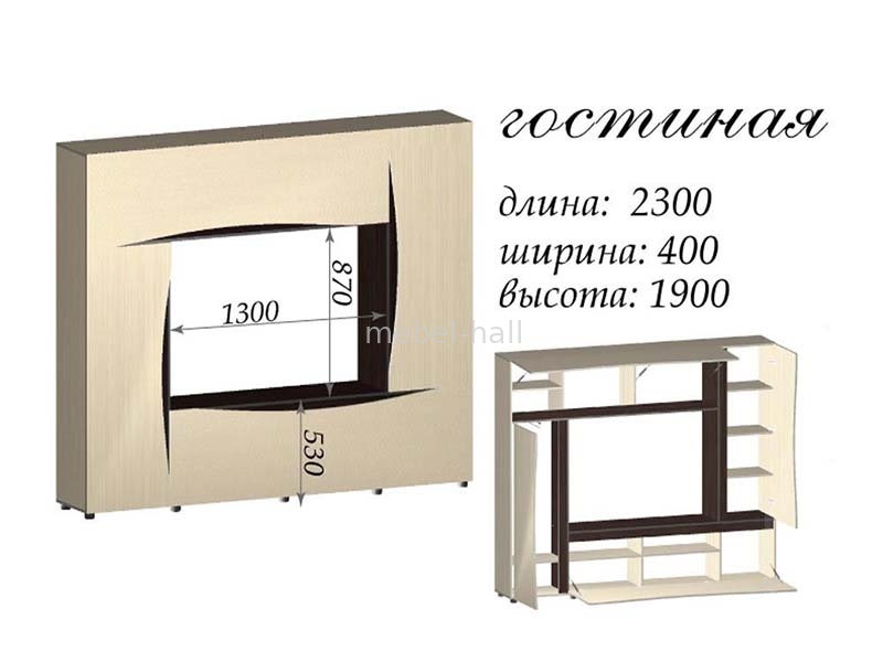 В стенке предусмотрена ниша под телевизор: Ш130хВ87хГ40 см.