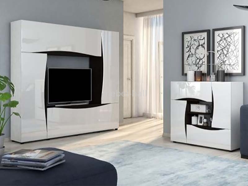 Гостиная МДФ Амулет Мастер Форм - это современная оригинальная мебель выполненная в стиле модерн от украинской мебельной фабрики Мастер Форм. Стенка продается цельной конструкцией и состоит из следующих элементов: тумба под телевизор, шкафа с штангой для вешалок, закрытых полок и закрытого пенала. Мебель характеризуется простыми прямоугольными формами, контрастными вставками, отсутствием ручек, их роль выполняют фрезерованные на фасаде выемки, регулируемыми опорами и газовыми амортизаторами. Стенка Амулет Мастер Форм - стильная и функциональная мебель по доступной цене.