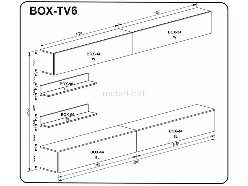 Стенка под TV - это изделие Модульной гостиной BOX MiroMark, каждый элемент которой Вы можете подобрать отдельно.