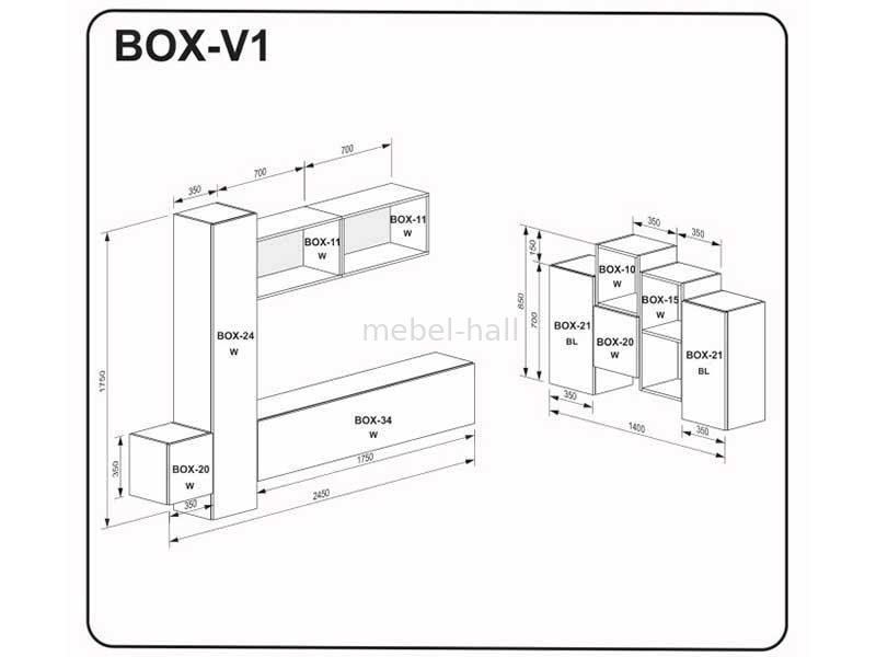 Стенка под TV - это изделие Модульной гостиной BOX MiroMark, каждый элемент которой Вы можете подобрать отдельно.
