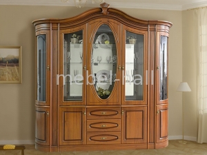 Эксклюзивная стенка сервант Цезарь-3 Світ меблів оригинал. Вместительная стенка для небольшой гостиной с оригинальными радиусными МДФ фасадами и короной. Благодаря применению стекла визуально кажется легкой и не уменьшает визуальный объем пространства комнаты. Гостиная Цезарь-3 изготовлена из высококачественных и долговечных материалов. Доступна в двуз цветах: