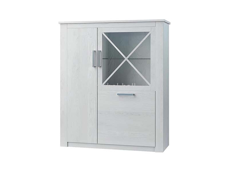 Фасад выполнен из ламинированного ДСП с рамочным профилем из МДФ в цвете Сосна водевиль.