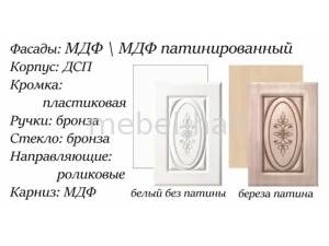 | Материал фасада: | МДФ пленочный, МДФ пленочный с патиной |