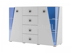 Модульная стенка ПРИЗМА Світ Меблів - стильная гостиная, воплощающая в себе всю красоту и сдержанность простых линий и форм. Выпускается в эффектном белом глянце с стеклами и подсветкой. Такое сочетание зрительно расширяет пространство. В качестве декора используются необычные металлические ручки цвета «алюминий». Модель оснащена выдвижным ящиками на направляющих полного выдвижения, что гарантирует плавность при выдвижении и долговечность. А голубая подсветка стеклянных полок делает мебель неповторимой.