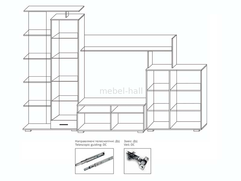 Стенка оснащена качественной мебельной фурнитурой. Напраляющие на ящиках телескопические.