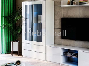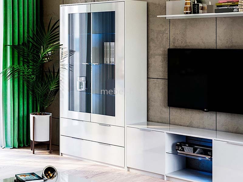 Модульная мебель для гостиной Рома в современном стиле с белыми глянцевыми фасадами от украинской мебельной фабрики MiroMark. Привлекательный дизайн, новейшие тенденции, лаконичность, функциональность, качественные материалы и фурнитура, помогут легко оформить стильный интерьер комнаты.