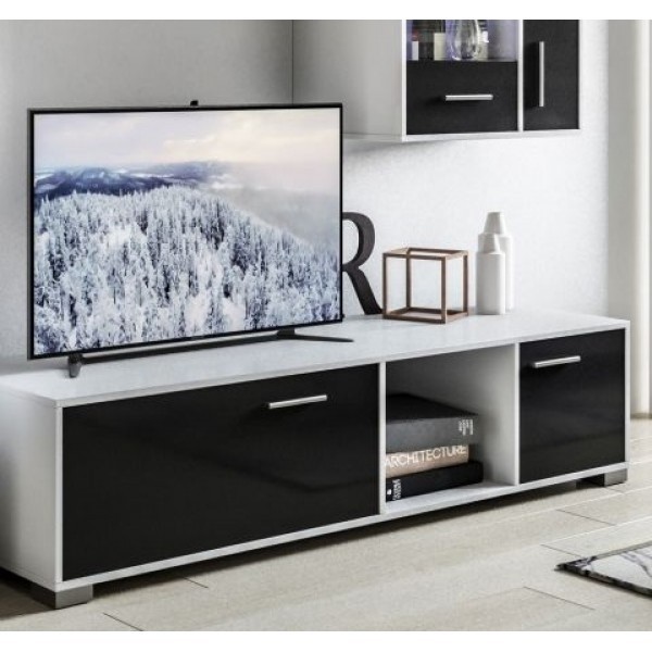Небольшая стенка в гостиную Бруклин СМ с черными глянцевыми фасадами современная и элегантная гостиная от украинской мебельной фабрики. Корпус и фасад у данной модели сделаны из специального мебельного ДСП. Для покраски корпуса используют белый цвет. Фасад у этой модели гостиной окрашен в чёрный цвет. Комплект гостиной включает в себя: навесную тумбу, тумбу, полку, тумбу для ТВ.