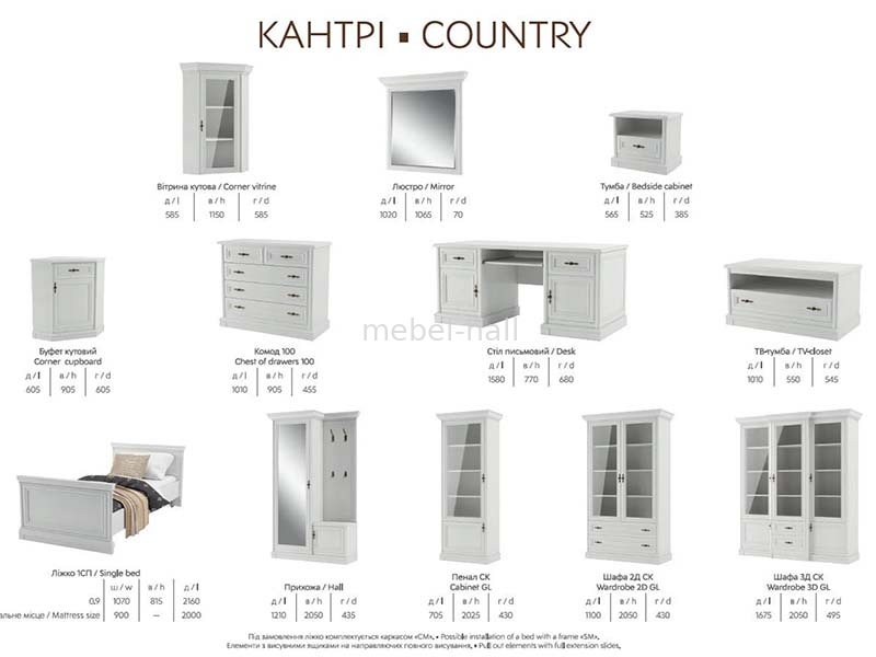 Мебель КАНТРИ отличается своим изяществом и роскошью, классическим дизайном, высоким качеством используемых материалов, изысканностью форм и великолепием отделки. Такая мебель станет не только украшением дома, но и подчеркнет утонченный вкус ее обладателей.