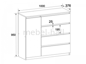 Комод 1 дверь и 4 шухляды Брайт Мастер Форм 1000х376х950h мм ДСП Белый / Венге Магия