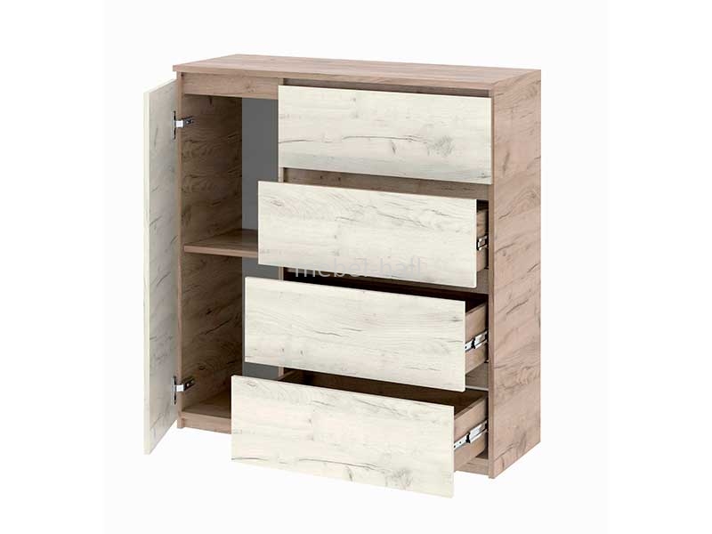 Комод 1 дверь и 4 шухляды Брайт Мастер Форм 1000х376х950h мм ДСП Дуб Крафт Белый / Дуб Крафт Серый